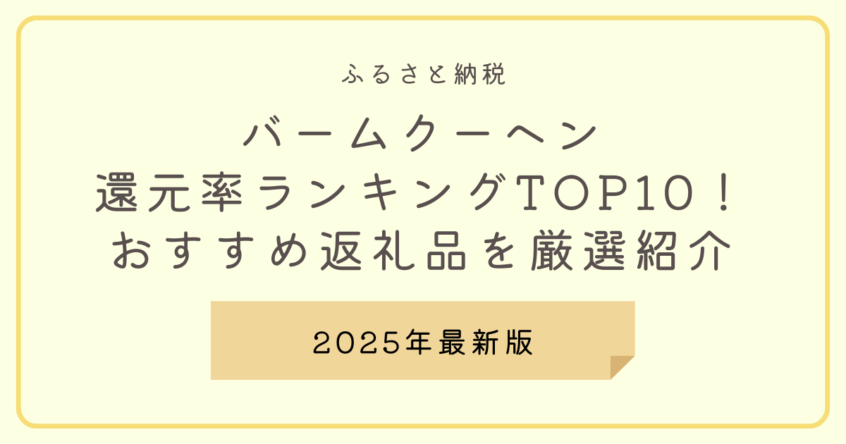 還元率とレビュー評価をもとに、ふるさと納税でおすすめのバームクーヘン返礼品を10個厳選してランキング形式で紹介します。