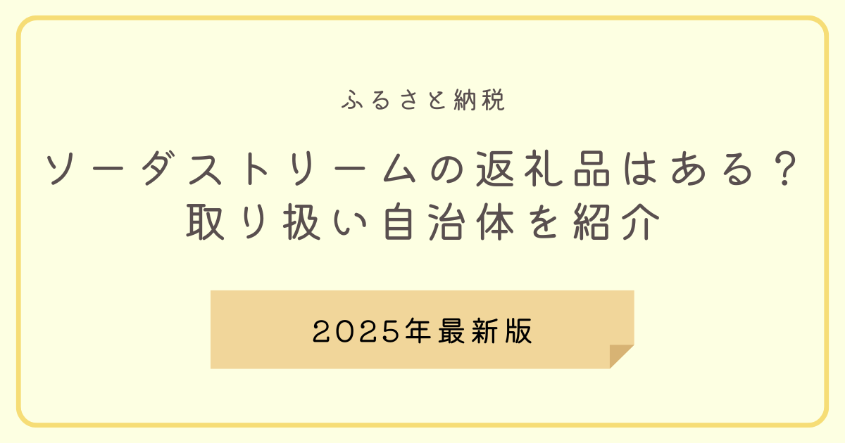 2025年11月現在、ふるさと納税でソーダストリーム本体を返礼品として取り扱っている自治体はありませんでした。
